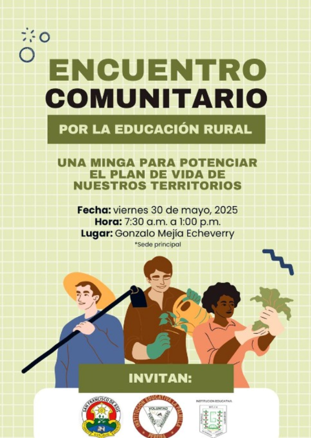 El próximo viernes 30 de mayo se realizará el primer encuentro comunitario por la educación rural. Cordialmente invitamos a todos los miembros de la comunidad a que se unan a las mesas de trabajo, que estarán en la tarea de analizar las problemáticas que actualmente deben tenerse en cuenta en educación rural, con base en las líneas de reflexión planteadas en el documento orientador del foro educativo del Ministerio de Educación Nacional. Sus voces, sus
