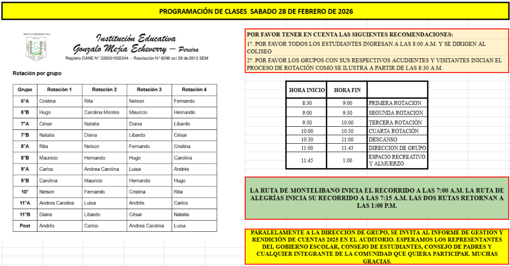 Programación de actividades sábado 28 de febrero de 2026